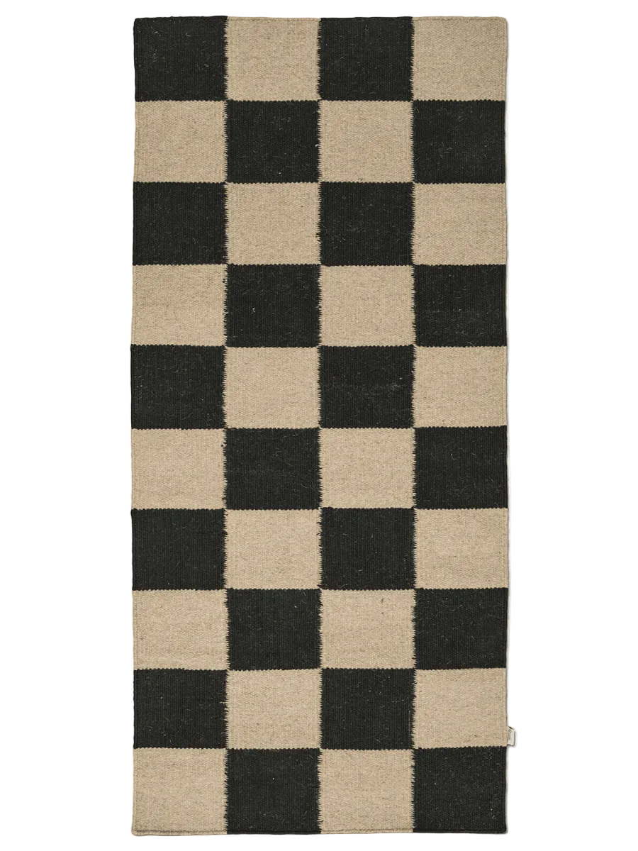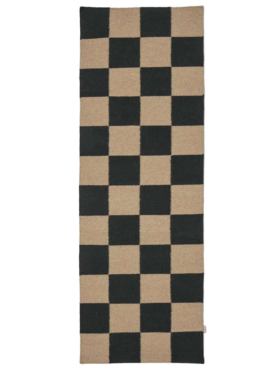 Upptäck tidlös elegans med vår handvävda gångmatta Square. Det klassiska rutmönstret i beige och vitt ger en fräsch och stilfull touch till ditt hem. Squares-mattan är tillverkad av ull, vilket gör den perfekt för kök och hall. Skapa en tidlös atmosfär i ditt hem med Squares-ullmattan och njut av både stil och kvalitet.