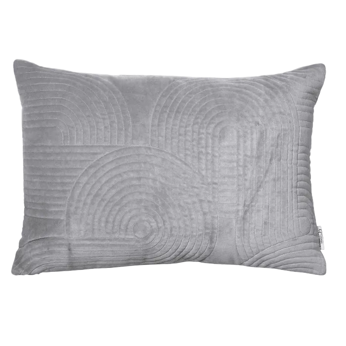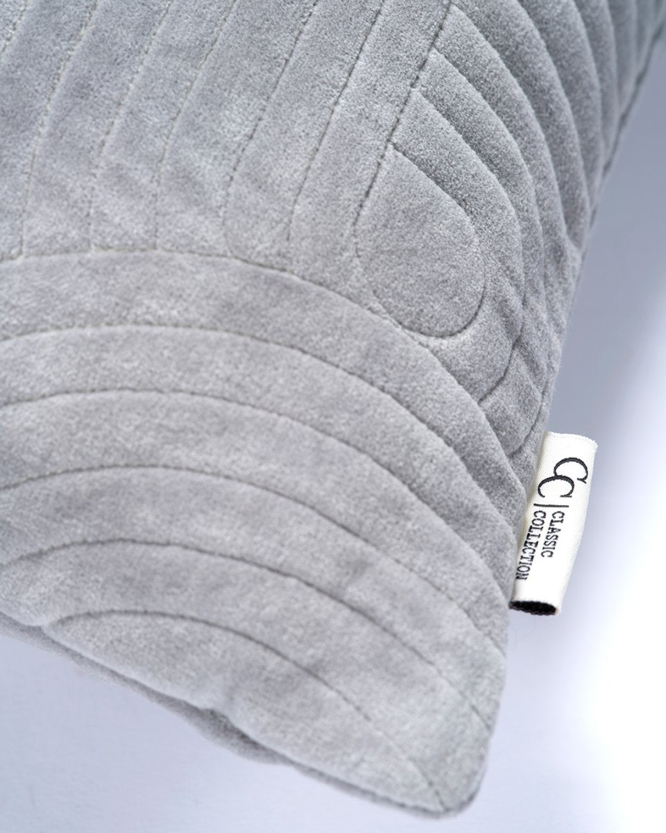 Kuddfodral Arch i Slate Grey är en serie kuddfodral i enfärgad bomullssammet. Kudden har ett sytt mönstret som föreställer ett valv. Baksidan är i slät sammet, blixtlås i botten.