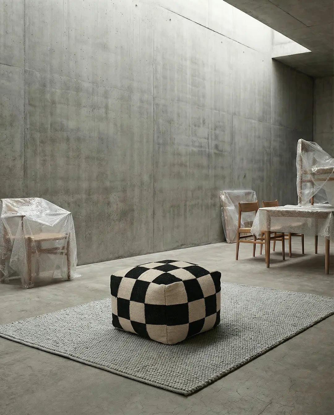 Puff Square är en stilren sittpuff som sys för hand av en slätvävd ullmatta i ett luftigt rutmönster i svart och naturbeige. Det klassiska mönstret bidrar med ett fräscht, skandinaviskt uttryck som smälter in i både moderna och klassiska interiörer. Den kubiska formen gör puffen lika praktisk som extra sittplats, fotpall eller dekorativ accent i vardagsrum, hall och sovrum.