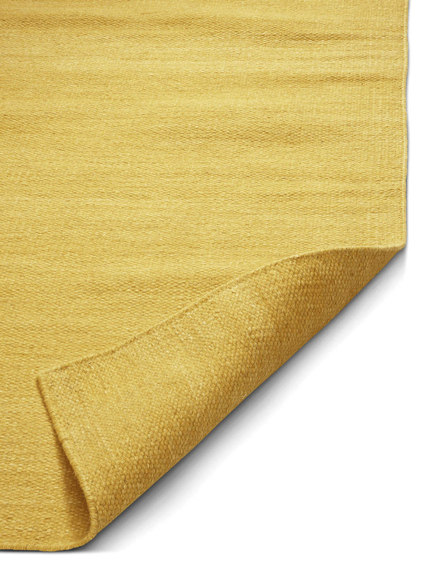 Plain Gul är en flatvävd, tvåsidigt användbar matta i en livfull gul nyans. Tillverkad i ull ger den både mjukhet och slitstyrka. Med sin minimalistiska design passar den lika bra i vardagsrum, sovrum, hall eller kök – och blir ett stilfullt, naturnära inslag i hemmet.