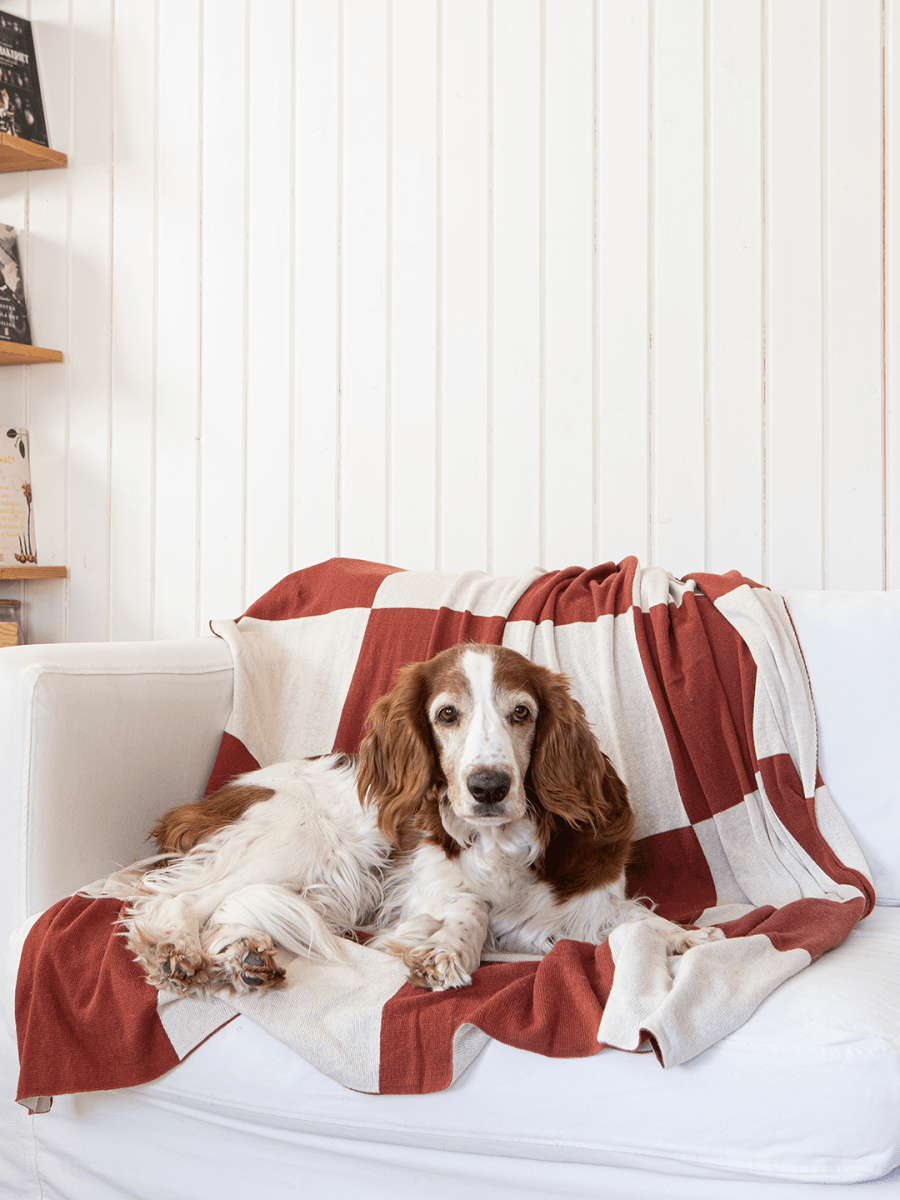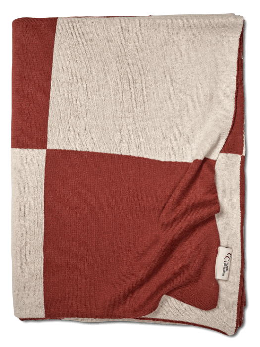 Pläden Square är tillverkad i mjuk bomull och pryds av stora, tydliga rutor i mörk terracotta och vitt. De varma jordtonerna ger en ombonad och harmonisk känsla som passar särskilt bra under höst och vinter. Perfekt att låta ligga framme som en del av inredningen eller svepa om sig när kvällarna blir kyliga.