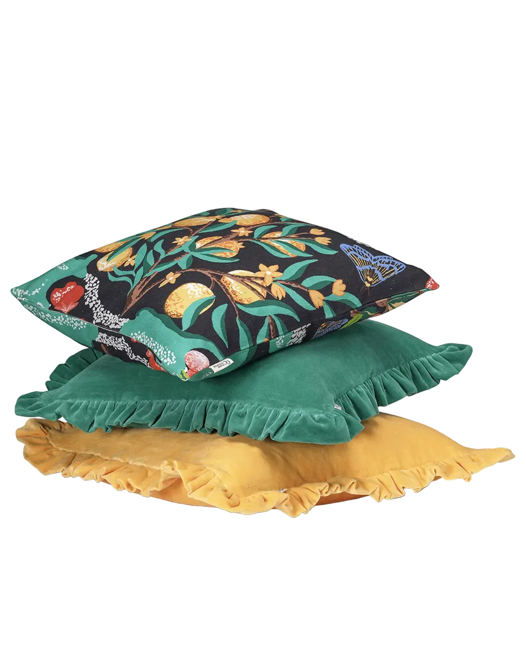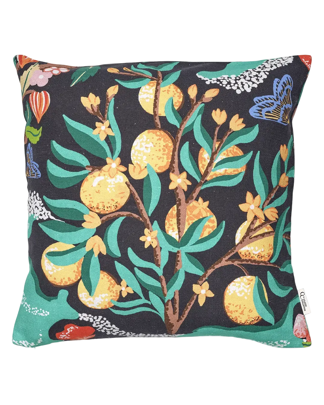 Kuddfodral Botanical Orange, är ett färgstarkt och stilfullt tillskott till ditt hem. Tillverkad av bomull med linnekänsla och slub-struktur, ger den en naturlig och modern look. Motivet föreställer en frodig botanisk trädgård med apelsinträd, omgiven av livfulla löv och blommor.