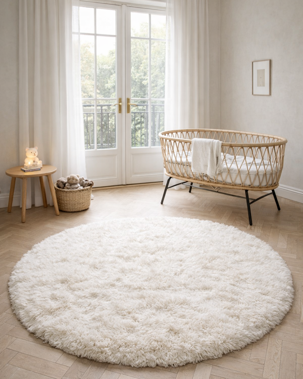 Matta Cloudy Rund Naturvit