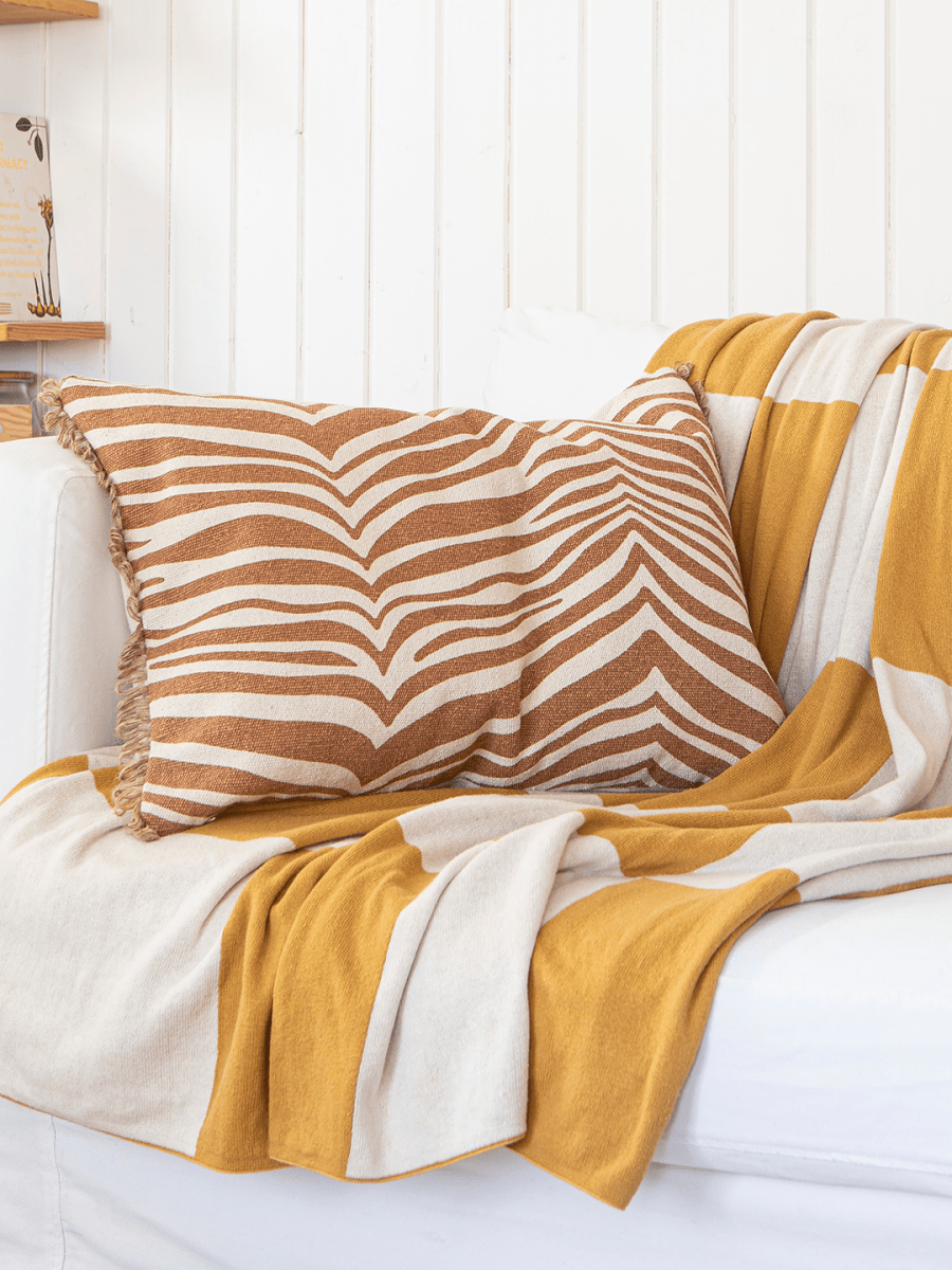Pläden Square är tillverkad i mjuk bomull och pryds av stora, tydliga rutor i gult och vitt. Den pigga färgkombinationen ger liv åt rummet och skapar en varm och välkomnande känsla. Perfekt att använda året om, både som praktisk värmande pläd och som dekorativ detalj i soffan, fåtöljen eller sängen.