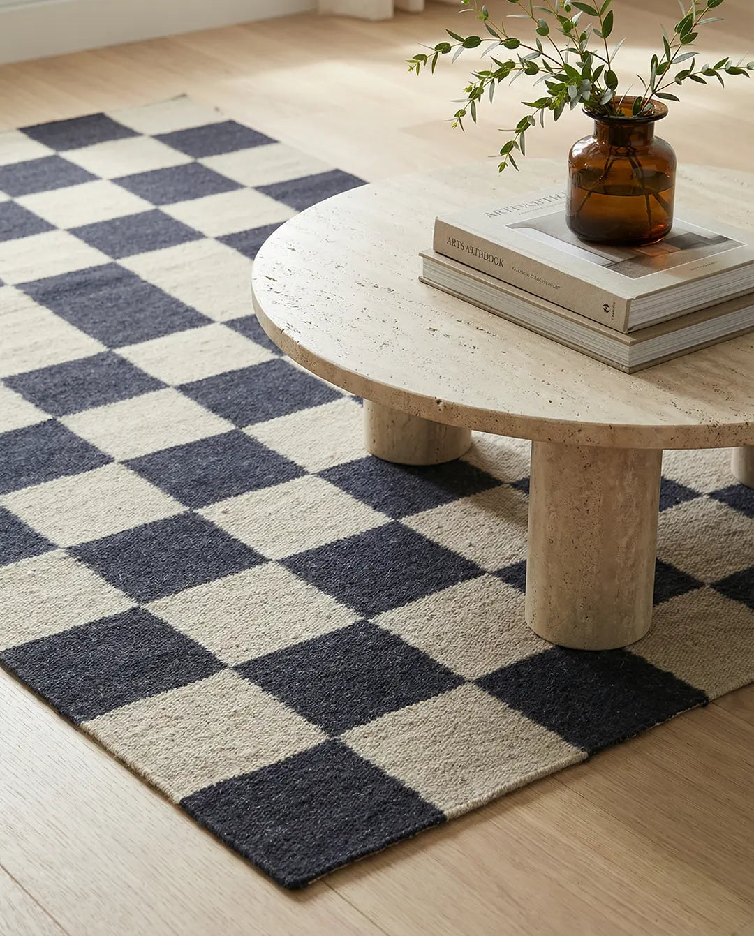 KLASSISCHES RUTENMUSTER-TEPPICH AUS WOLLE IN SCHWARZ UND NATUR