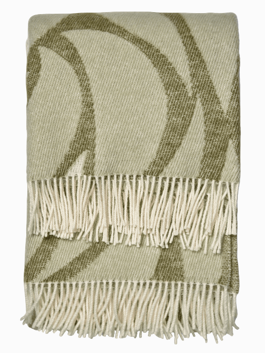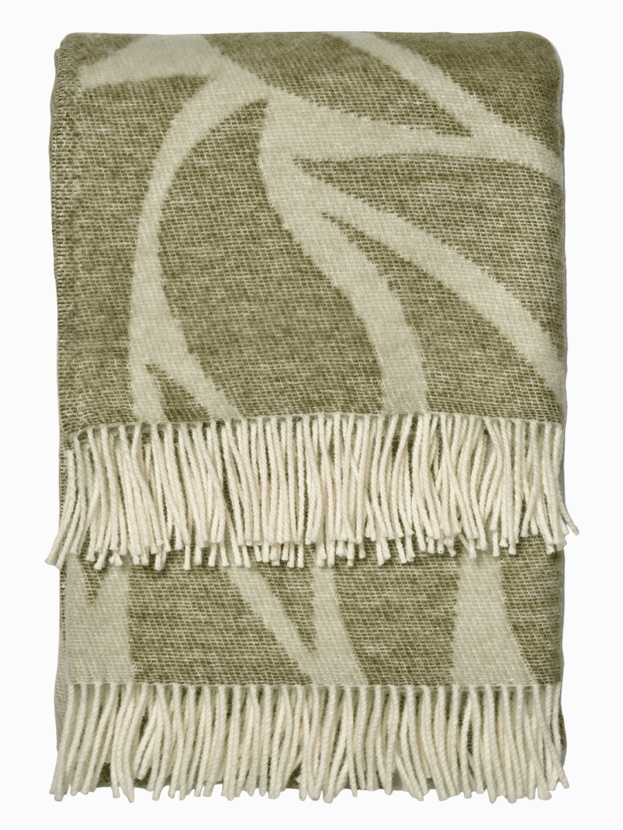 Leaf är en jacquardvävd ullpläd i mjuk nyzeeländsk ull. Det organiska mönstret hämtar formspråk från lövverk och ger ett naturligt, lugnt uttryck. Vändbar väv gör att färgställningen kan varieras. Green är en mild grön nyans med naturvit kontrast som fungerar väl i både ljusa och varma interiörer.
