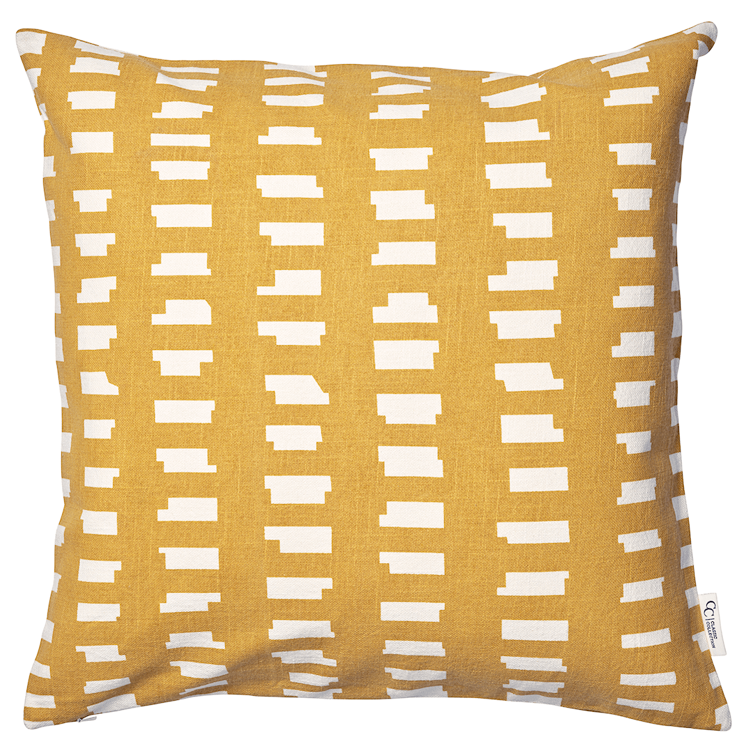 Ikat Block Ocker ist ein Kissenbezug aus 100 % Baumwolle mit einem grafischen Muster asymmetrischer Blöcke, inspiriert von traditioneller Ikat-Technik. Der warme ockerfarbene Grundton wird von cremeweißen Partien unterbrochen und setzt einen klaren, vielseitig kombinierbaren Farbakzent auf Sofa, Sessel oder Bett.