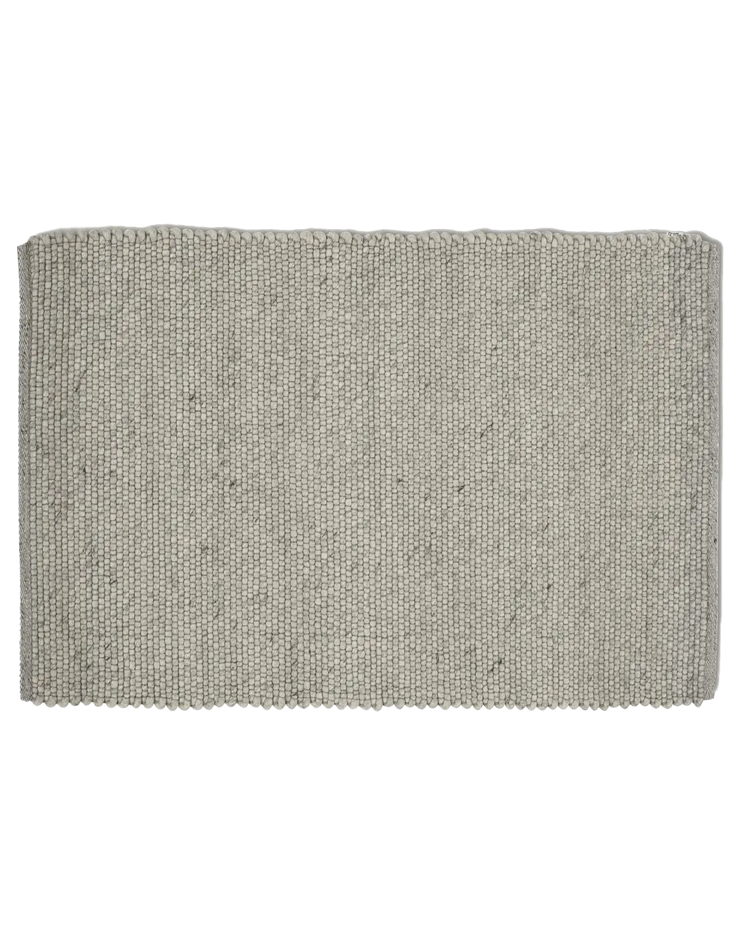 Dörrmatta Merino Concrete, en handvävd matta i ull. Mattan är vändbar och kan därför användas med båda sidor upp.