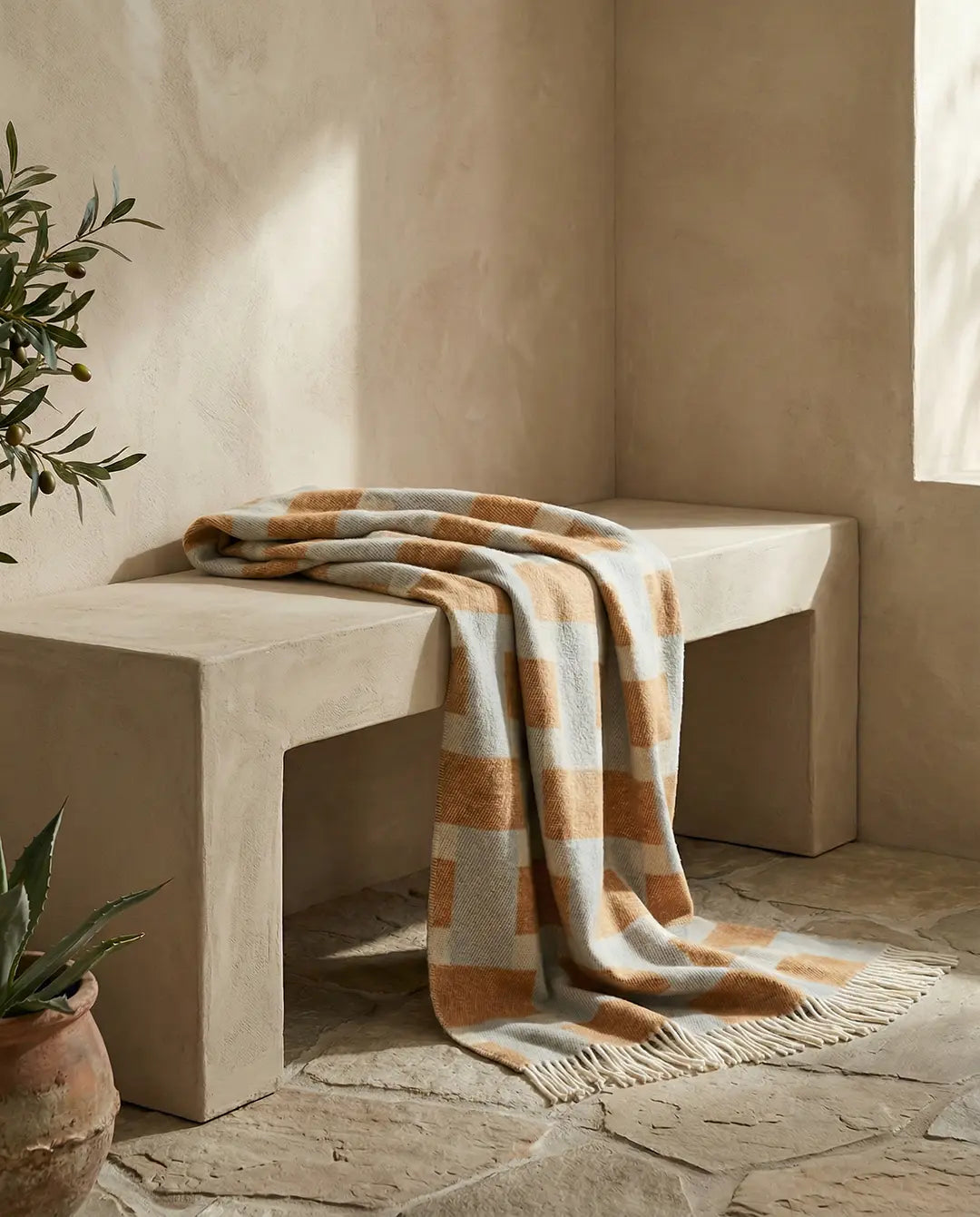Weave Terrakotta ist eine jacquardgewebte Decke aus 100 % Neuseelandwolle. Das Muster entsteht aus überlappenden Bändern und vermittelt den Eindruck einer geflochtenen Struktur. Durch die Jacquardtechnik ist die Decke auf beiden Seiten gleich hochwertig und wendbar – für Abwechslung auf Sofa oder Bett.