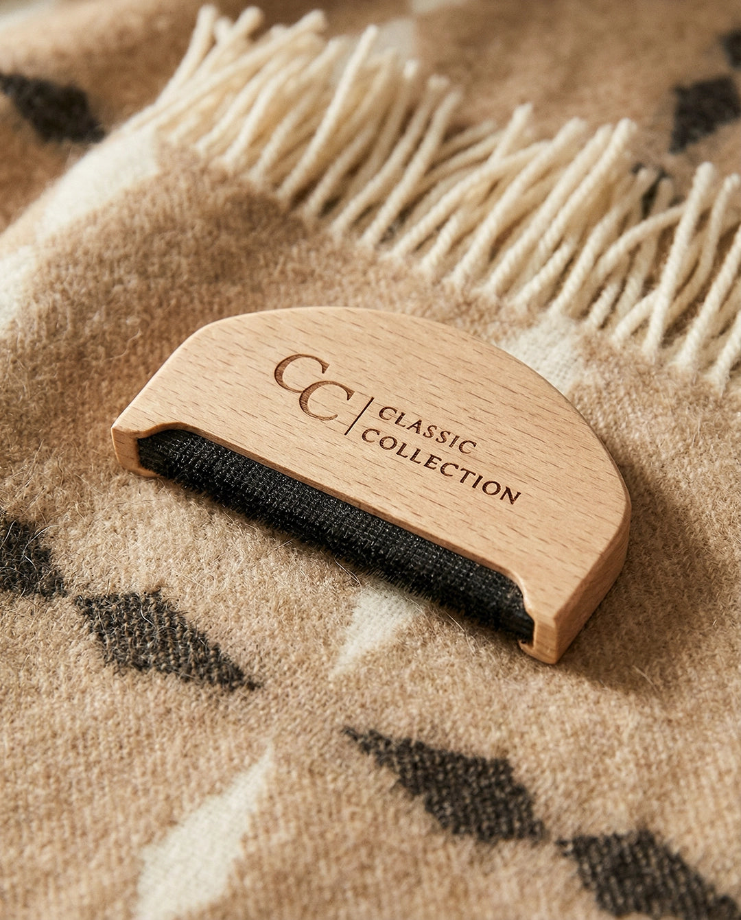 Ullkam från Classic Collection som effektivt och skonsamt avlägsnar noppor och ludd från produkter i ull. Den är särskilt framtagen för att bevara materialets kvalitet och förlänga livslängden på plädar, mattor, kläder och andra ullprodukter. Enkel att använda och ett praktiskt verktyg för regelbunden textilvård.
