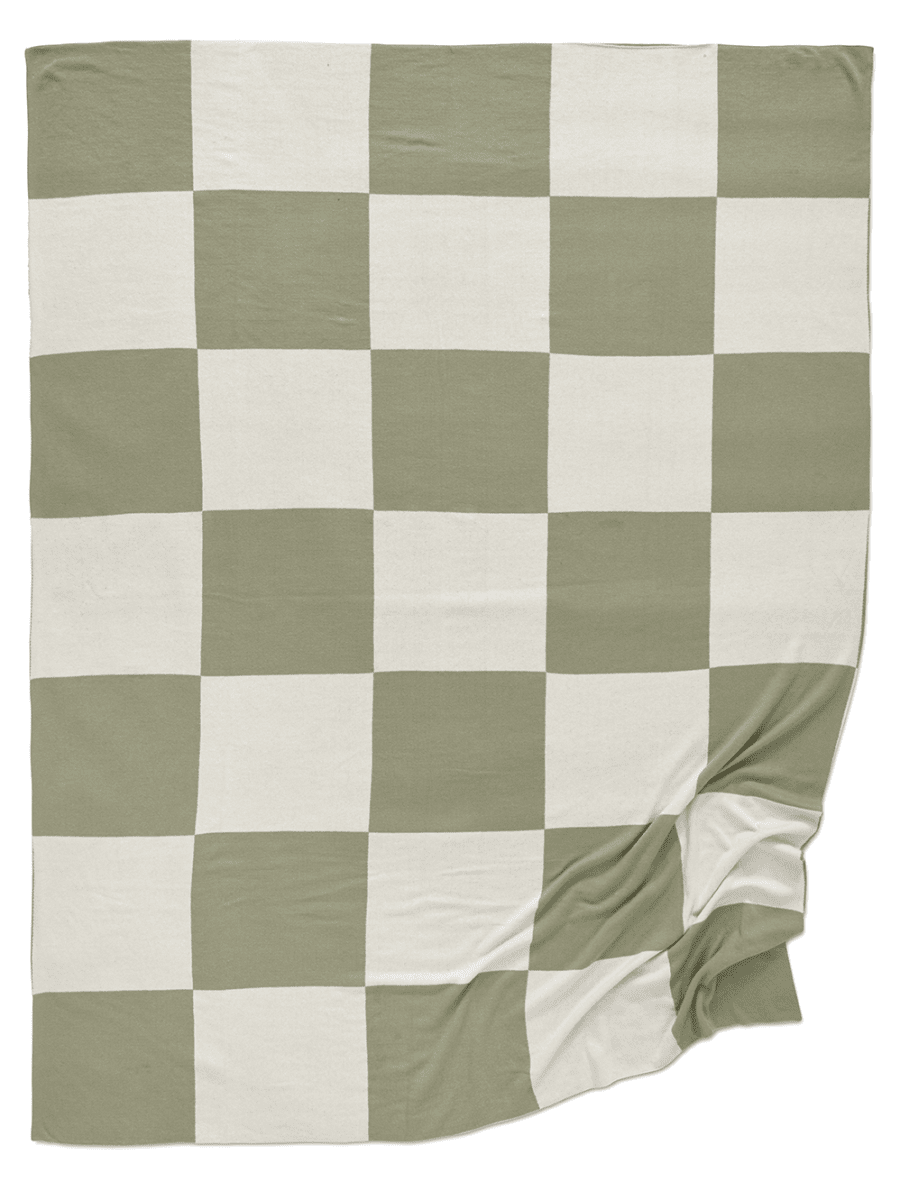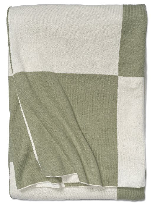 Mjuk bomullspläd med gröna och vita rutor
