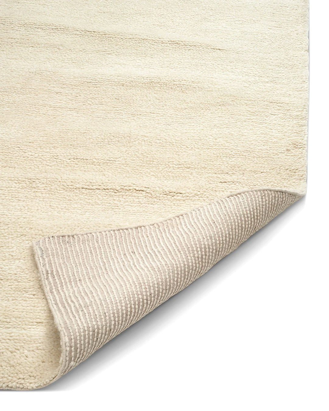 Dune Ivory is a handwoven wool rug in a soft off-white tone. The rug features a dense, full pile where the structure of the yarn creates a subtle natural variation, adding depth to the solid design.