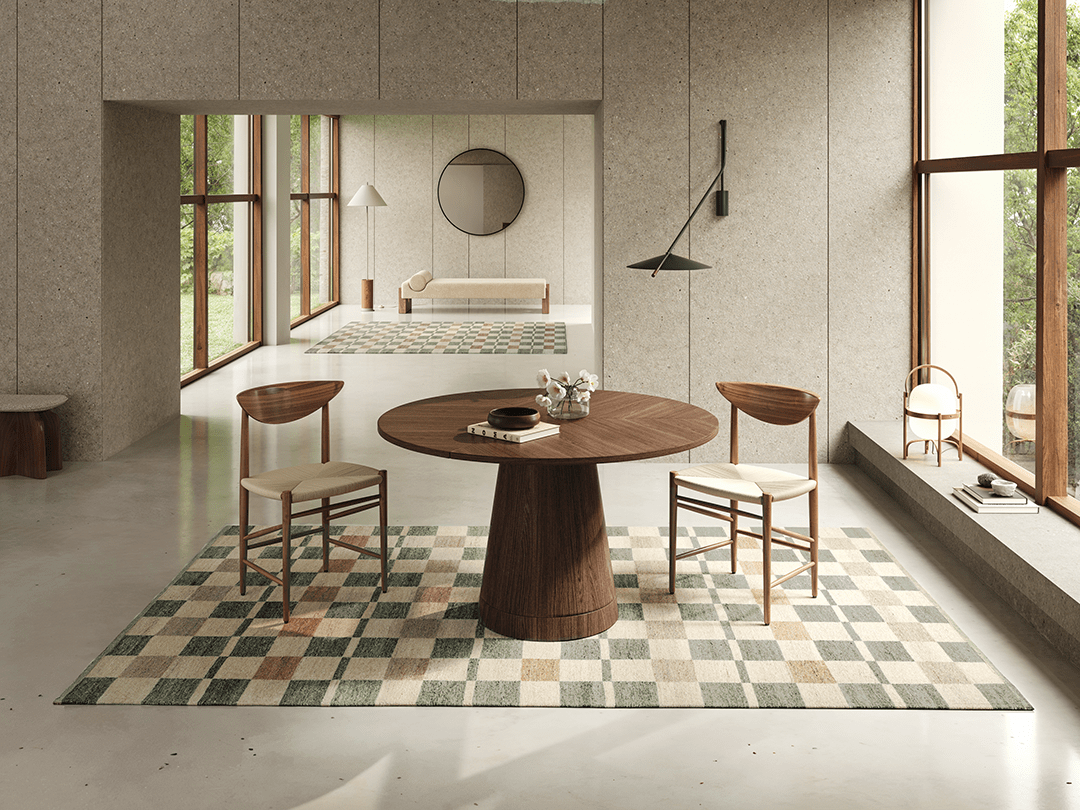 Rutvik is a handwoven kilim rug in the Arv collection. The small-check block pattern repeats in a steady rhythm across the entire surface. Muted shades of green, natural beige, yellow/ochre and rust create a harmonious and versatile expression. The flatwoven construction makes the rug reversible and easy to place under furniture. Wool is naturally durable and dirt-repellent, with a matte, tactile surface that ages beautifully. Minor variations in weave and tone reflect the genuine craftsmanship.