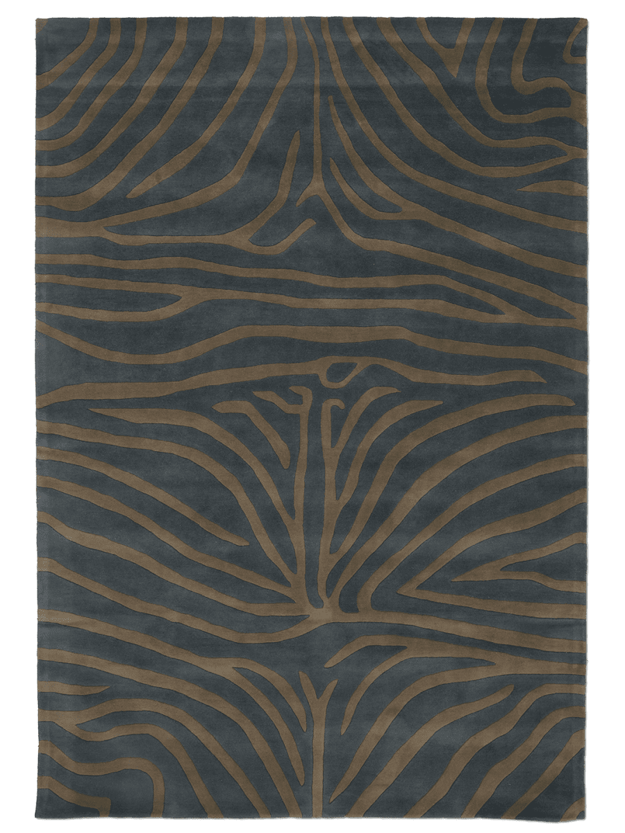 Handtuftad ullmatta med zebramönster i mörkgrått och brunt