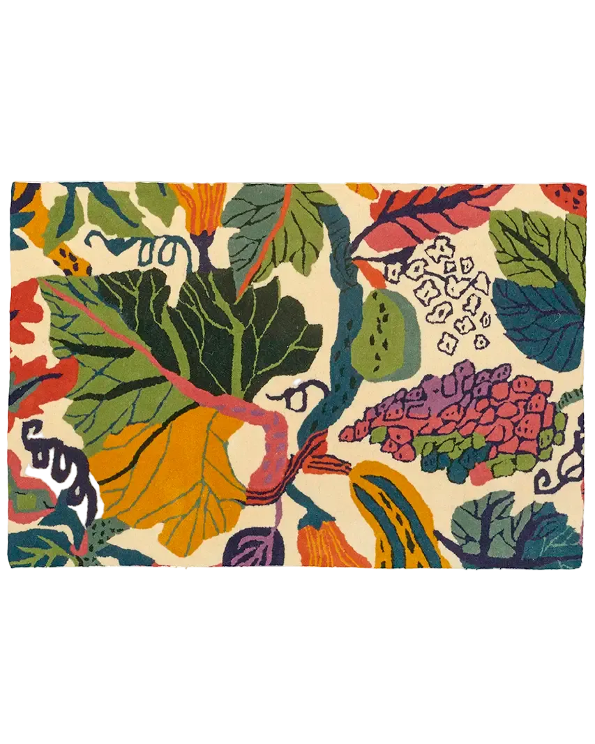 Dörrmatta Heritage Garden Cream/ Multi har ett färgstarkt mönster inspirerat av vackra grödor och slingrande blad. Mattans lugg är tillverkad i ull och vilar på en botten av bomullsväv – en kombination som ger en slitstark, formfast och naturligt smutsavvisande yta.