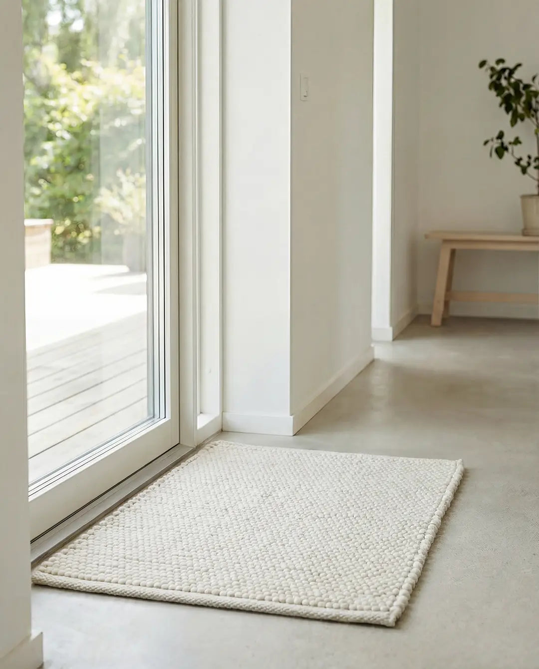 Dörrmatta Merino Vit, en handvävd matta i ull. Mattan är vändbar och kan därför användas med båda sidor upp.