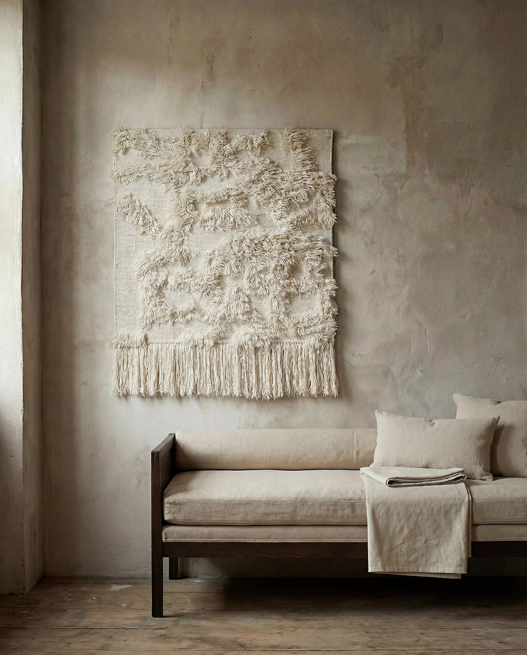 Väggbonad Rio är handvävd i ull och finns i ytterligare färger. Denna enkla dekoration passar perfekt, till exempel, bakom soffan i vardagsrummet.